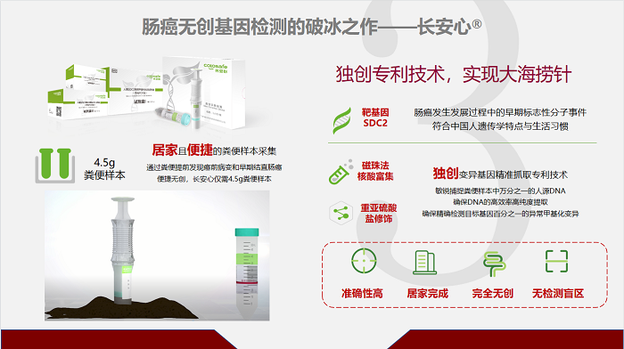 目前,長安心®在醫(yī)院、第三方檢測機構、康立明醫(yī)學檢驗實驗室等進行了超過30萬例檢測,在醫(yī)療機構、社區(qū)場所等實際應用中性能表現(xiàn)優(yōu)異,檢出大量的早期結直腸癌和癌前病變,成為腸癌篩查的重要工具及方法,起到行業(yè)引領和標桿作用。