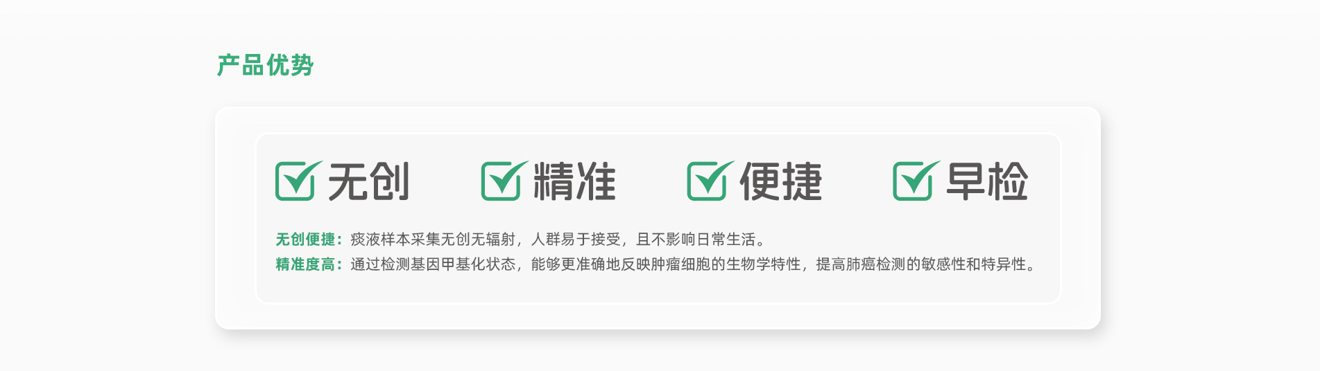 會(huì)安心?人類HOXB4、SRCIN1基因甲基化檢測(cè)試劑盒(熒光PCR法)于2025年5月29日正式獲批上市,這是首個(gè)痰液肺癌甲基化檢測(cè)試劑盒。 會(huì)安心?通過解讀痰液中脫落腫瘤細(xì)胞的基因異常改變(人類HOXB4、SRCIN1基因甲基化)進(jìn)行肺癌的早期檢測(cè),幫助發(fā)現(xiàn)患者早期肺癌病變情 況, 有希望將肺癌阻斷在早期階段,從而達(dá)到預(yù)防和根治肺癌的目的