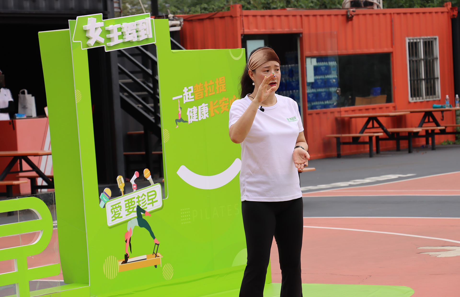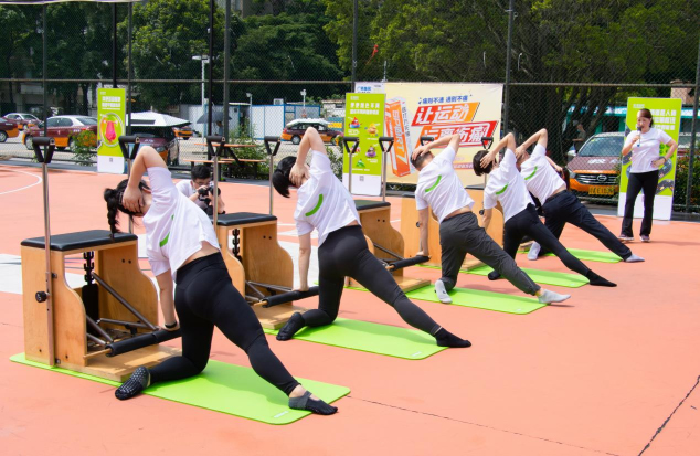 在現(xiàn)場,馬老師詳細(xì)演示、講解了“腸道普拉提”動作,并帶領(lǐng)30多位普拉提愛好者一起展示。