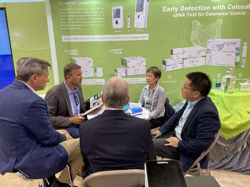 其中,長安心®糞便基因腸癌檢測、久安心®膀胱癌基因檢測和會(huì)安心®肺癌基因檢測等產(chǎn)品,以其精準(zhǔn)、便捷、無創(chuàng)等優(yōu)勢,成為與會(huì)專業(yè)人士關(guān)注的焦點(diǎn)。同時(shí)也展示了康立明全資子公司好芝生物產(chǎn)品HelixPOC®全自動(dòng)微流控?zé)晒釶CR一體機(jī)、HemoPOC®凝血檢測系統(tǒng),綜合展示了公司的創(chuàng)新領(lǐng)先技術(shù)。這些對于腫瘤的早期篩查、個(gè)性化治療以及疾病管理具有重要意義。