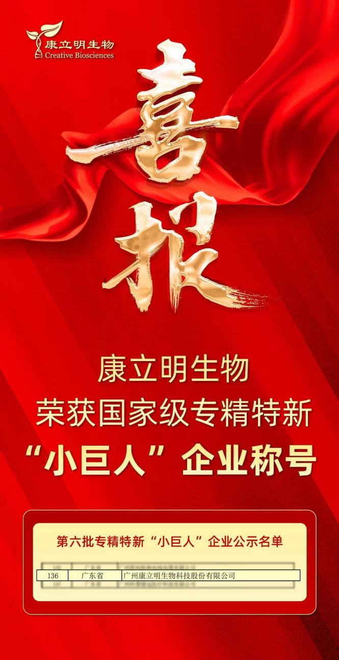 喜報!康立明生物榮獲國家級專精特新“小巨人”企業(yè)稱號