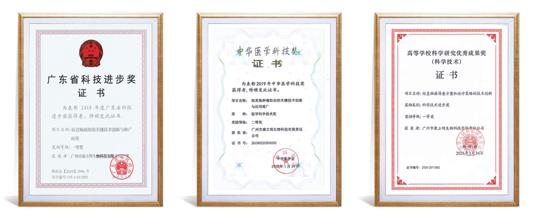 康立明生物在企業(yè)發(fā)展層面也屢獲殊榮,公司曾先后被評為廣州創(chuàng)新型中小企業(yè)、廣東省專精特新中小企業(yè),這些榮譽都是對公司創(chuàng)新能力、市場競爭力以及發(fā)展?jié)摿Φ母叨日J可。除此之外,公司憑借卓越的科研成果和實力,榮獲了2018年廣東省科技進步獎一等獎、2019年中華醫(yī)學科技獎二等獎、2020年教育部科學技術進步獎一等獎,這些重要獎項是對康立明生物整個團隊創(chuàng)新能力的肯定。