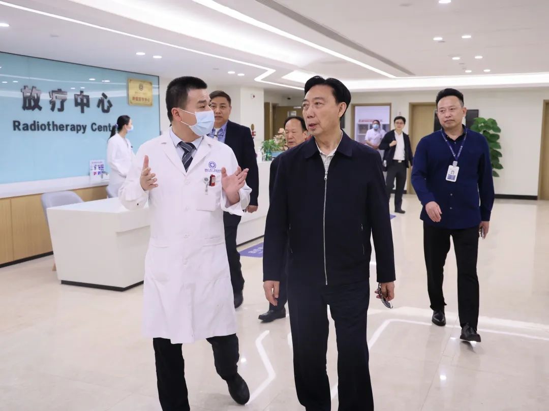 在參觀中,白書忠部長還了解到前海人壽廣州總醫(yī)院引入了華南地區(qū)最新型的頭部伽瑪?shù)叮@是目前國際上最先進的腫瘤放療技術之一,能夠在治療頭部腫瘤的同時最大程度地保護患者的健康組織。