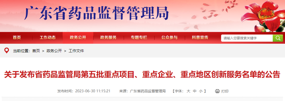 省藥監(jiān)局 | 第五批重點項目、重點企業(yè)、重點地區(qū)創(chuàng)新服務名單